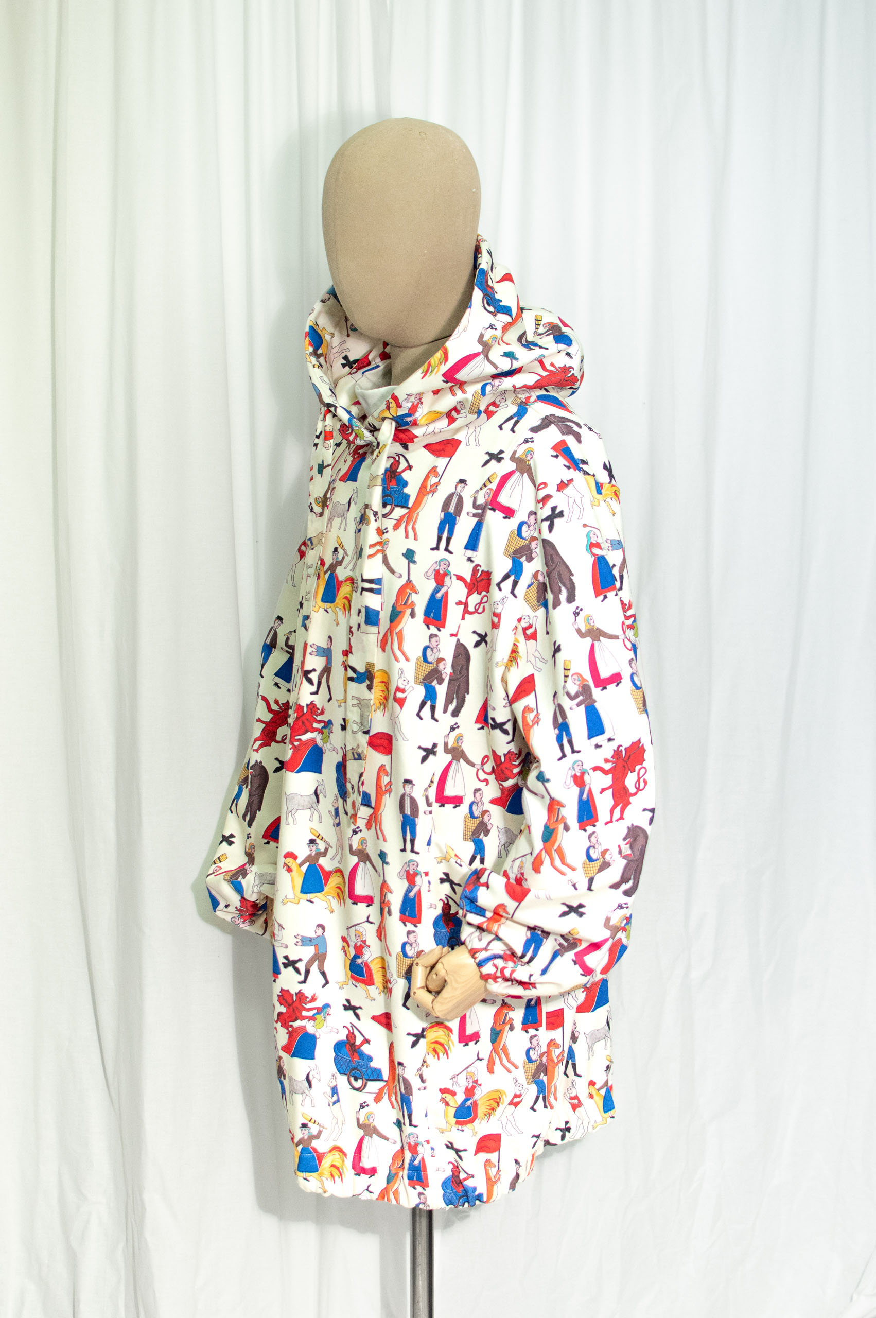 Spice up your wardrobe with JKH identity piece: This organic cotton french terry hoodie dress is printed with a JKH identity authentic pattern – beehive panels. To read more about this pattern click HERE. The dress was made for an exhibition at the museum of Radovljica. It is a one of a kind piece.