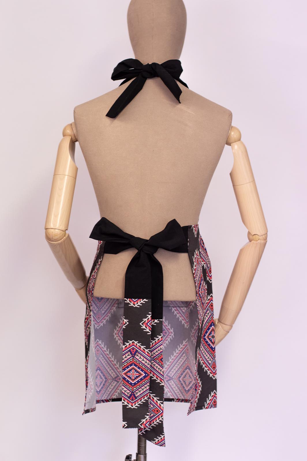 - tie straps in waist and around neck